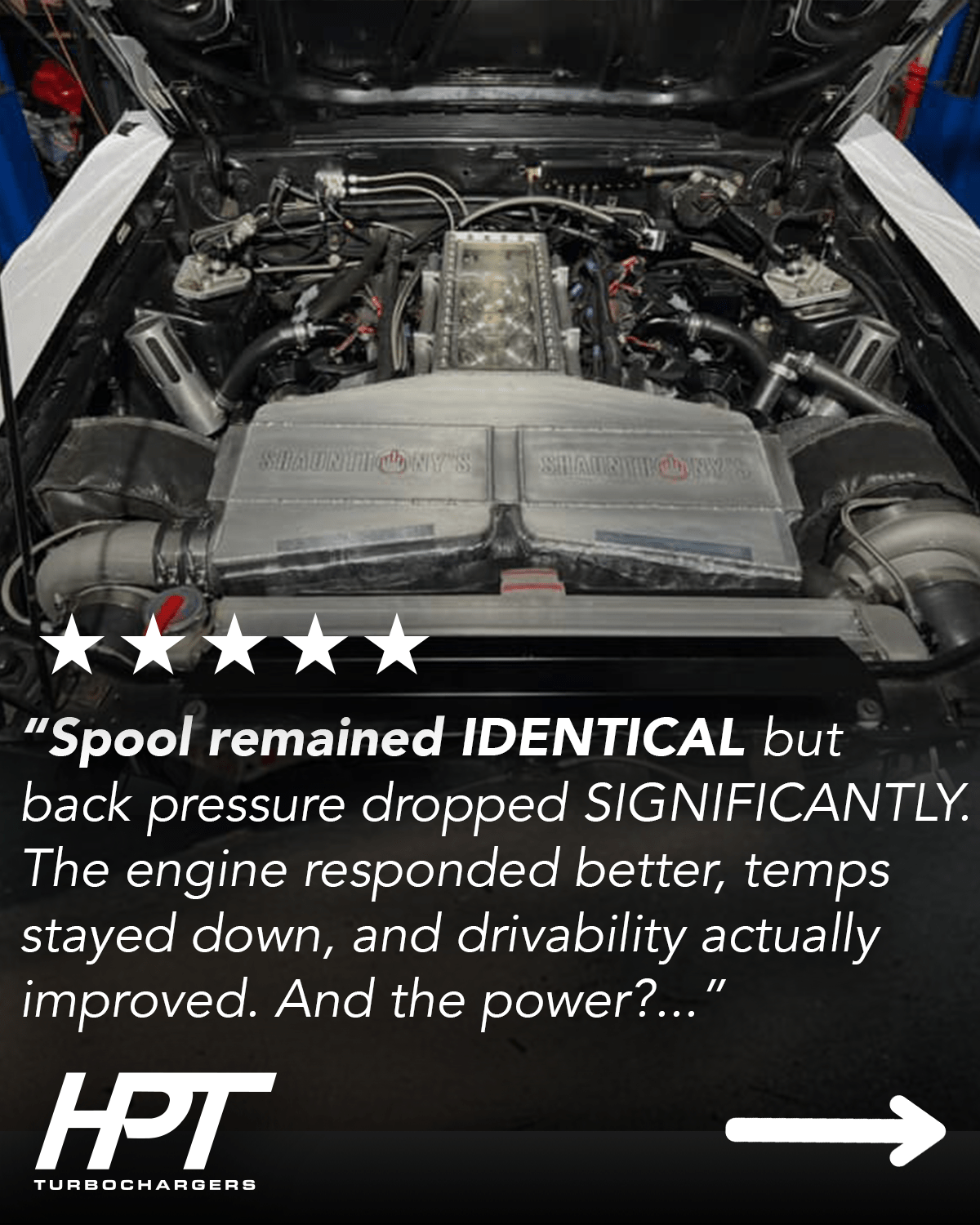 The F3 8280 Turbocharger is equipped with HPT's Quick Spool Technology, providing high efficiency with minimal lag.